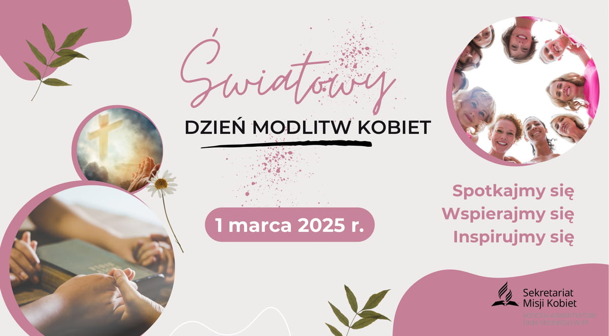 Od 1990 roku Sekretariat Misji Kobiet przy Generalnej Konferencji promuje specjalny dzień, w którym kobiety mają okazję wzmocnić swoje duchowe więzi, modląc się za siebie nawzajem. W minionych latach ten wyjątkowy dzień przypadał na pierwszy szabat marca i w tym roku jest dokładnie tak samo. Dlatego też w imieniu Kasi, Marysi i Patrycji, pracujących w Sekretariacie Misji Kobiet w poszczególnych Diecezjach, zapraszam Was do zorganizowania specjalnego czasu, który poświęcicie na wspólne rozmowy i modlitwę. To może być wyjątkowy czas na czytanie Słowa Bożego i wypowiedziane modlitwy, które przybliżą do Pana, będą pomocne w poznaniu Jego planów, staną się pocieszeniem i umocnieniem na każdy dzień.